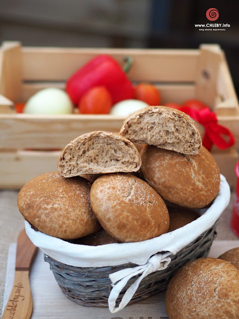 Nagrzewamy piekarnik do 180 stopni (grzałki góra-dół) i pieczemy bułki przez 20 minut, do zrumienienia. Po upieczeniu studzimy na kratce kuchennej.